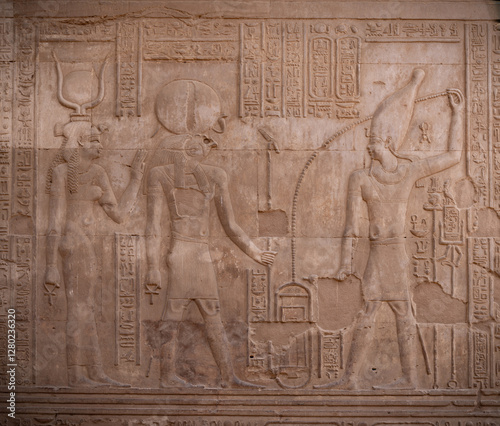 Templo de Kom Ombo. Egipto. Kom Ombo. El templo de Sobek y Haroeris construido durante la dinastía ptolemaica - Sala hipóstila con capiteles florales encima de columnas
