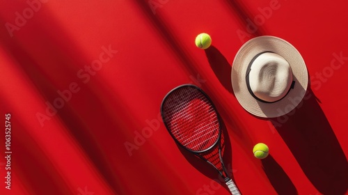 Tennis Gear on Red Background with Shadows