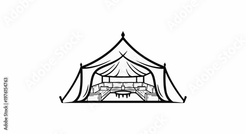 Tent interior with seating and coffee table