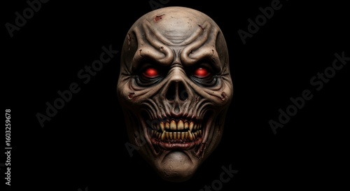 Terrifying mask worn for Halloween with creepy design and horror theme