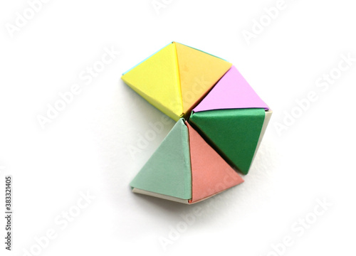 tetrahedrons origami, 3D folded shape paper figure.