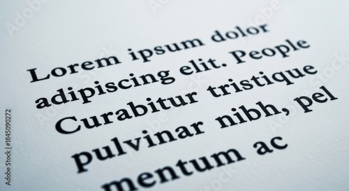Text Sample Close-Up: Black Ink on White Paper Showing Typography and Letterforms for Graphic Design