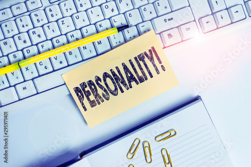 Text sign showing Personality. Business photo text combination characteristics that form individuals character Empty orange square papers by the pc keyboard with copy space