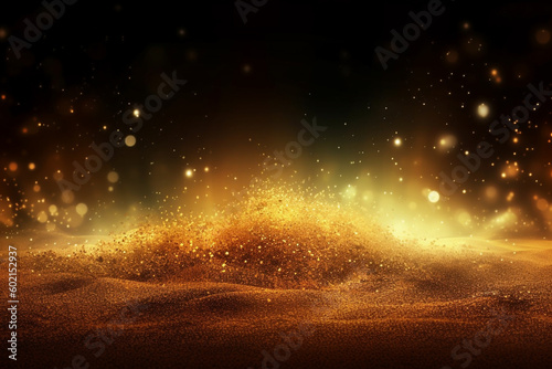 Texture background of golden sand on the bottom and glowing sparkles above