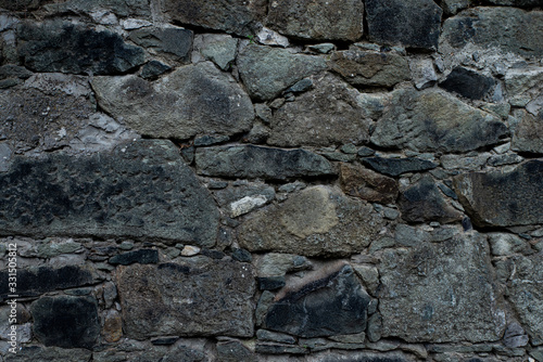 Texture of stone wall made of grey stones