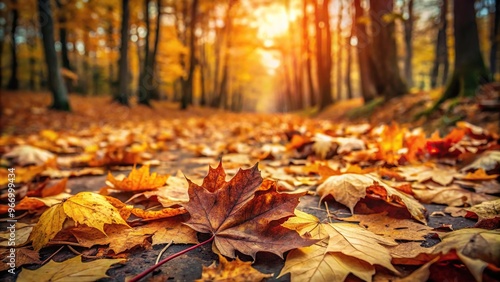 Textured autumn leaves scattered on forest floor