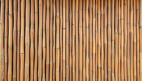 Textured bamboo wall, natural vertical lines, warm brown hues, serenity, element