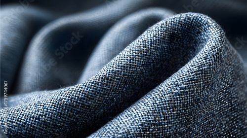 Textured blue woven fabric shows a detailed close-up view of its weave.