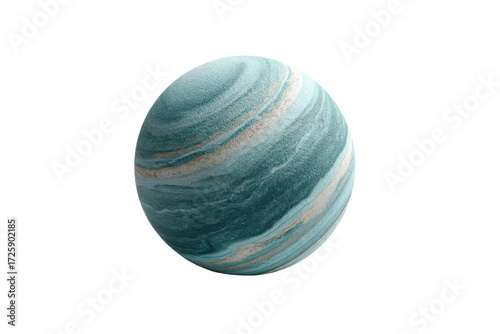 Textured spherical object with blue and white marble pattern on black background, cut out
