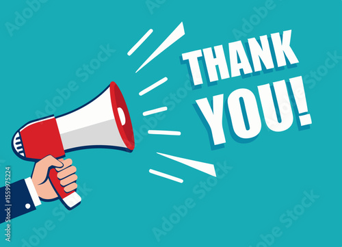 Thank you. Hand hold megaphone. Flat style. Vector illustration