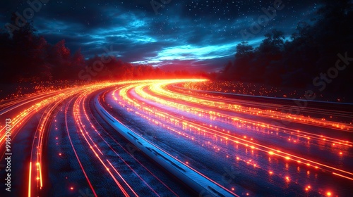 The abstract speed light background with glowing lines presents a modern technology scene with dynamic effects.