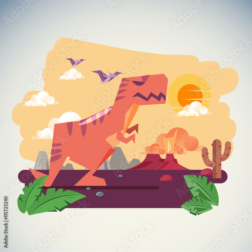 The Age of Dinosaurs with Volcano Eruption background - vector illustartion