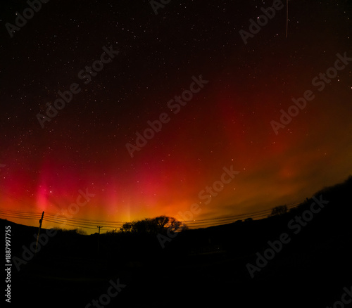 The Aurora Borealis, the northern lights, showing up above bungalow in County Donegal, Ireland