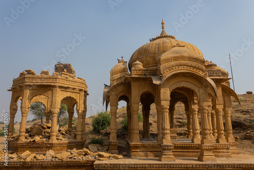 The Beautiful Architecture of Bada Bagh, The Royal Cenotaphs of Jaisalmer King, Golden Marble Architecture, Jaisalmer, Rajasthan, India.
