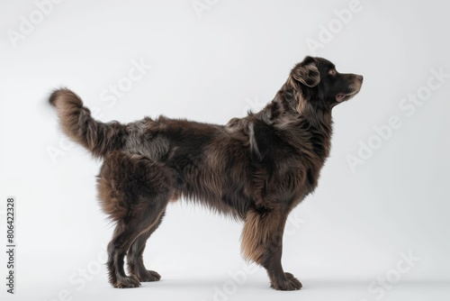 the beside view Newfoundland dog standing, left side view,