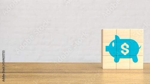 The blue piggy bank on wood cube for business concept 3d rendering