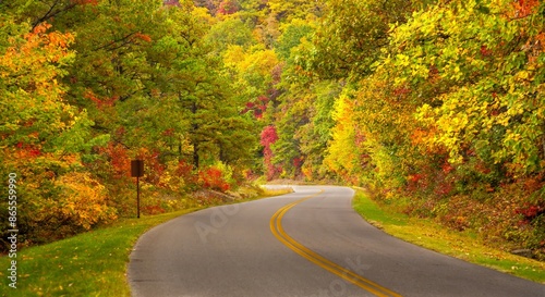 The Blue Ridge parkway winding through North Carolina in the autumn season.