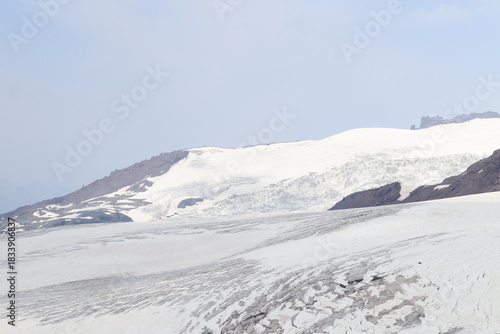 The Bolshoi Azau glacier on the slopes of Elbrus on a sunny summer day