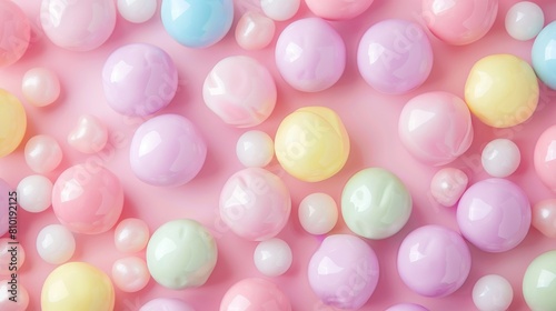 The candy balls are of different sizes and colors, creating a playful