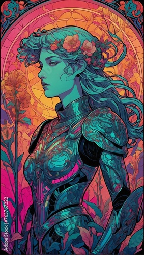 The Chariot tarot card with Art Nouveau flair