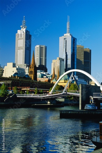The city skyline and Yarra River from Southgate, Melbourne, Victoria