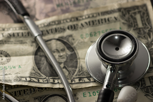 The cost of health care money and pills and stethoscopes