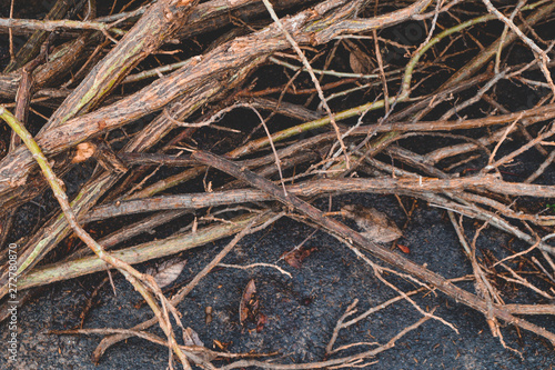 The cut branches are left on the road.