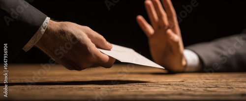 The Envelope Being Offered and Refused by Two People at a Wooden Table