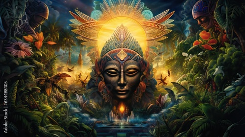 The ethereal Amazon spirit surfaces during shamanic journeys, unlocking mysticism with ayahuasca. Generative AI