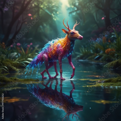 The ethereal shimmer of a radiant crystal crawler reflecting serene grace in a twilight fantasy