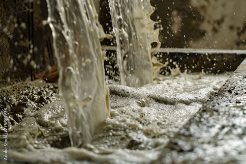 The fluid dance of construction a close-up view of ready mix concrete flowing at a construction site, symbolizing the foundation of new beginnings and solid structures