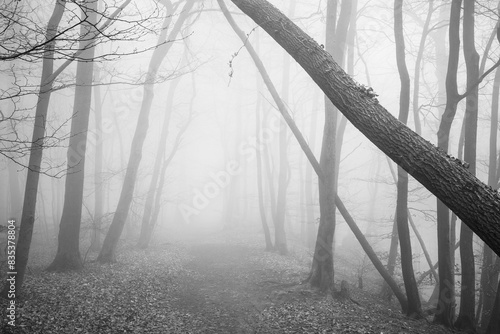 The forest in a fog.