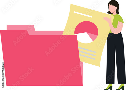 The girl is taking the file from the folder.