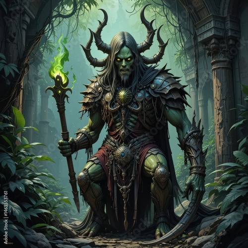 The Green Lord of the Jungle Ruins: A Fantasy Artwork
