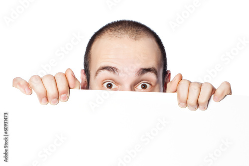 The guy looks out for the poster.