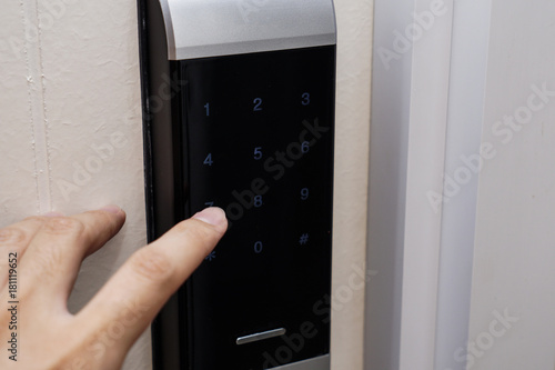 the hand touch on electronic key door