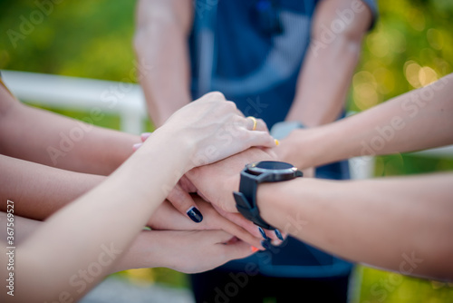 The hands of many people are working as a teamwork.