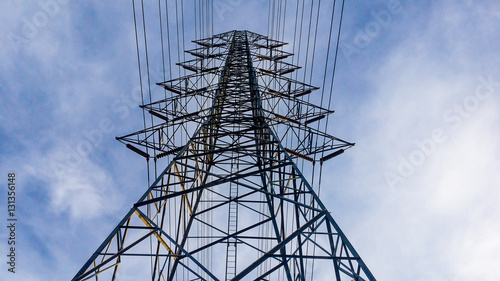 the high voltage post. High-voltage tower sky background