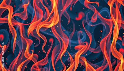the image displays a close up view of fiery flames with red and orange hues, the flames have a dynamic pattern, suggesting movement