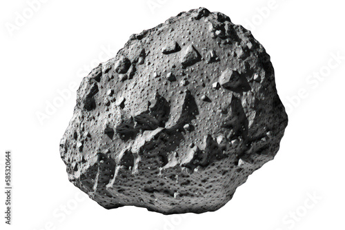 The image features a highly realistic depiction of an asteroid floating against a transparent background, allowing for a clear view of its rugged, cratered surface.Generative AI