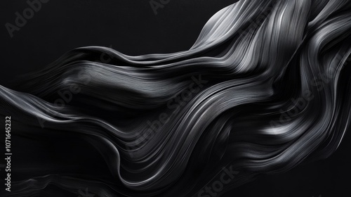 The image features smooth, flowing strands that resemble dark snakes or elegant fabric on a black background