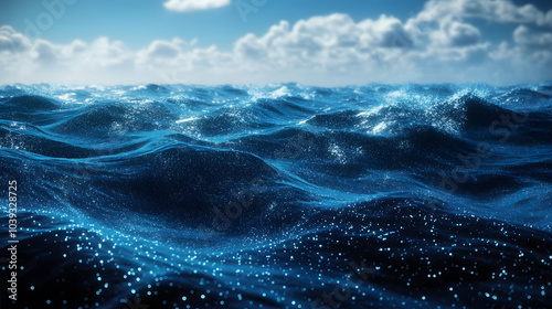 The image is a blue ocean with a lot of blue and white specks