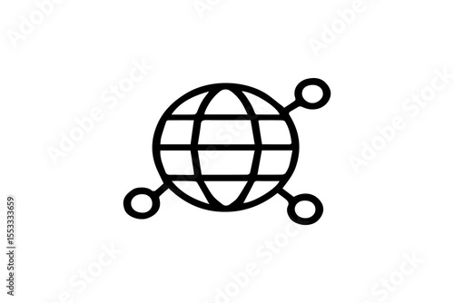 The image shows a black outline icon representing global connectivity or a worldwide network