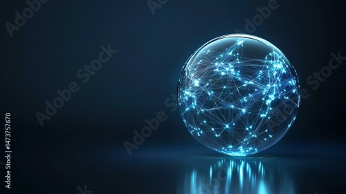 The image shows a sphere overlaid with a network of connected lines. It appears to represent a complex, interconnected system within a spherical form.