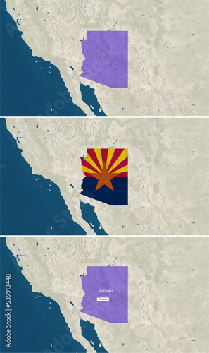 The map of Arizona with text, textless, and with flag