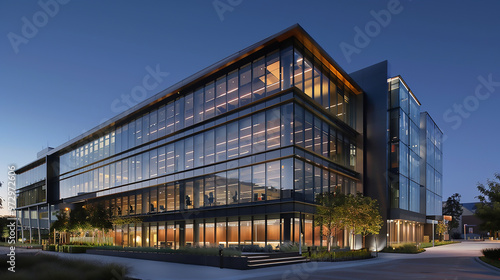 The mixture of geometric shapes and modern materials creates a unique building, which stands out among