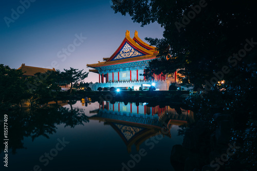 The National Concert Hall and a pond at night, at Taiwan Democra