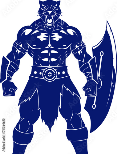 the navy blue pantherwarrior a symbol of unwavering might and savage defense, isolated on transparent background