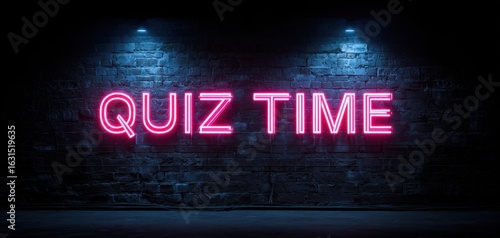 The Neon Sign Illuminating 'Quiz Time' on a Brick Wall