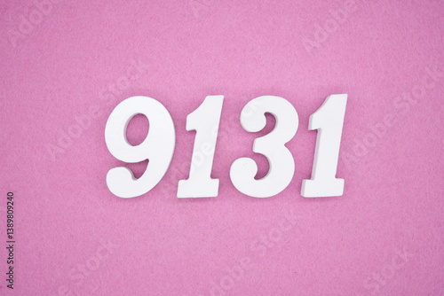 The numbers are made of white painted wood and placed on a pink paper background.